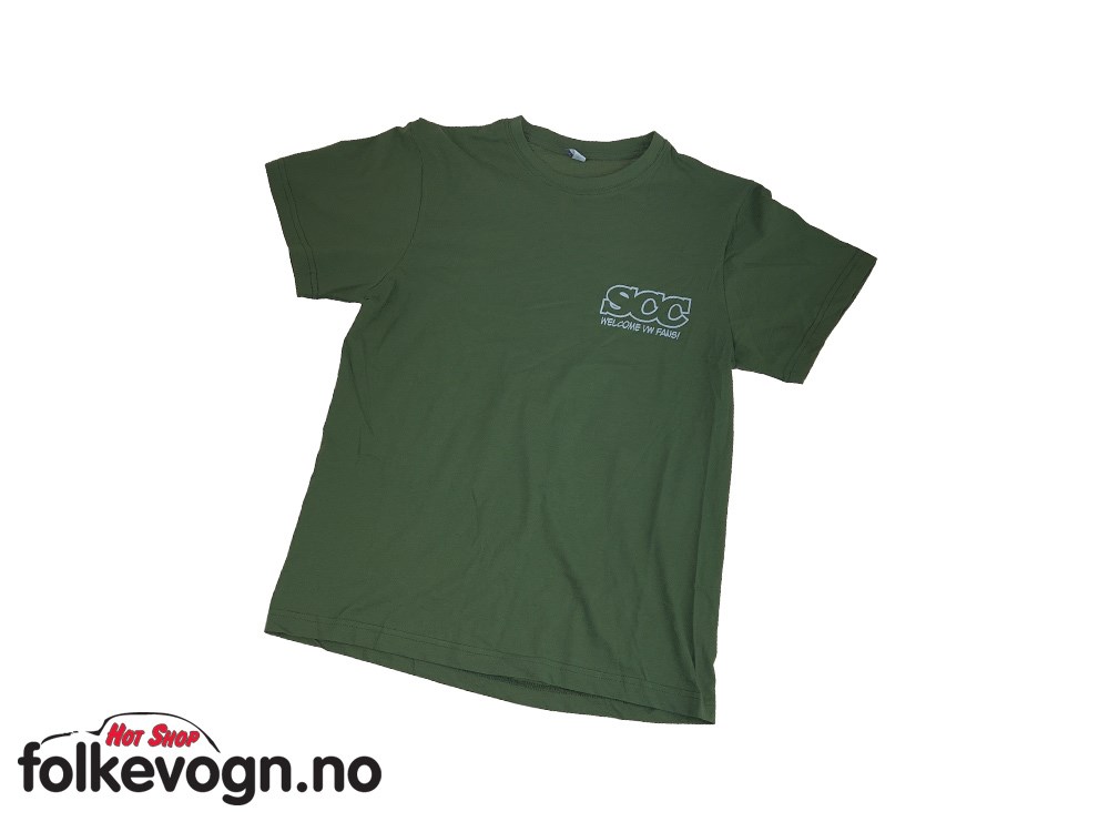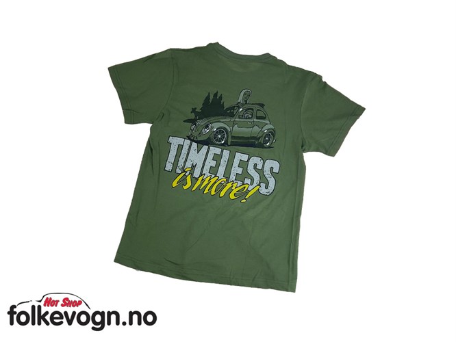 Original SCC t-shirt. Timeless is more - militærgrønn med folkevognmotiv på ryggen. Lansert på SCC i 2025. Størrelse S
