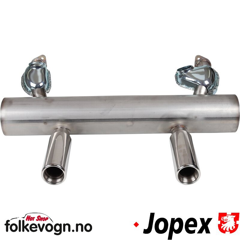 Bakre eksosanlegg i Performance 42 mm utførelse fra JOPEX gir bedre flyt og sportsligere lyd. Tilpasset flere varianter av Boble og Karmann Ghia.