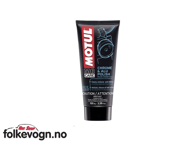 Motul Krom & Alu. polish. renser og ivaretar krom og alu deler. Påføres med ren polerklut, arbeid med produktet til oppnåss ønsket resultat. tørk tilslutt av med tørr klut.