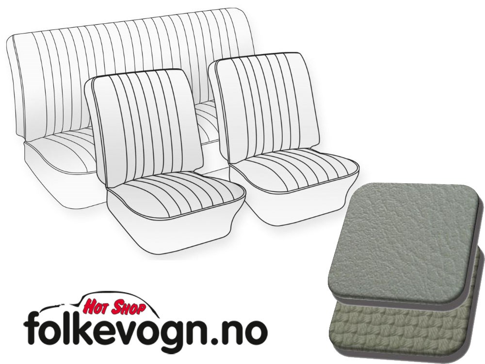 Setetrekk til å dra over de orginale trekkene. Enkel montering og svært bra resultat. Grå basket weave vinyl. Leveres som sett til to framseter samt baksete.