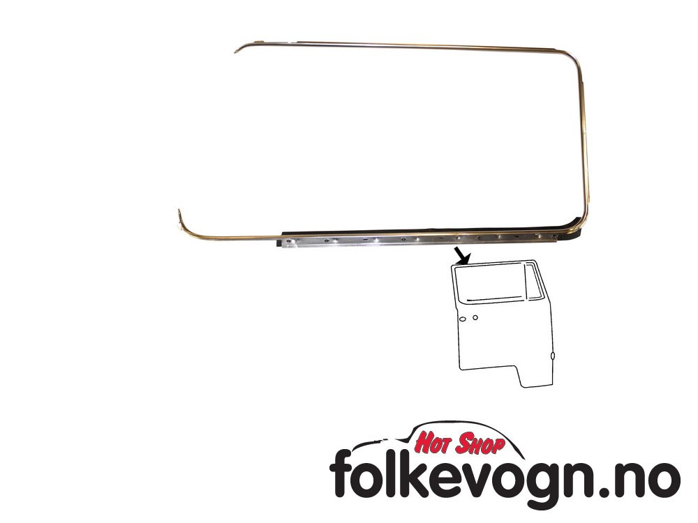 Skrapelist til vindu i venstre framdør på Type-2 Transporter 68-79. Kommer komplett påmonter aluminium kromlist som går rundt vindusrammen.