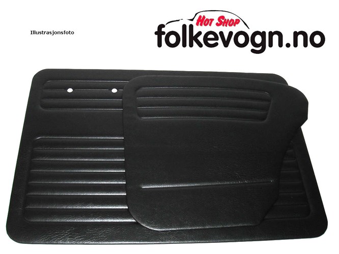Dørpanelsett Type-1 Cab 68-1972 i sort vinyl. Sett med 4 paneler med trekk. Ferdige hull til sveiv og åpner samt hull for festeklips.