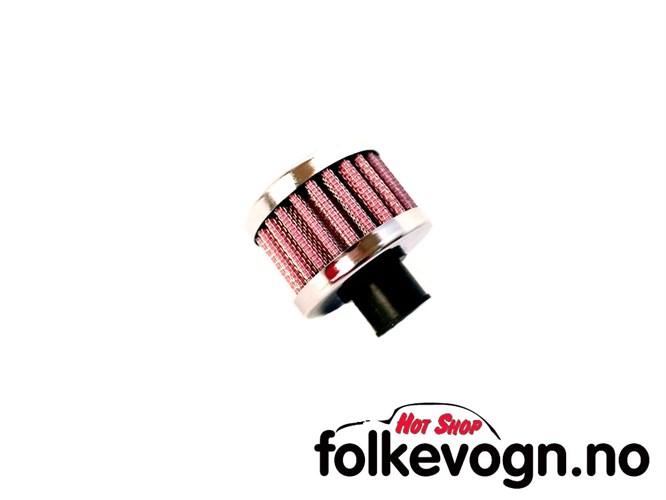 Luftfilter til oljedamp og veivhusventilasjon på Type-1 Boble og flere VW modeller 1/2" nippel. Universal type som ofte benyttes når uorginalt luftfilter og/eller forgasser er montert