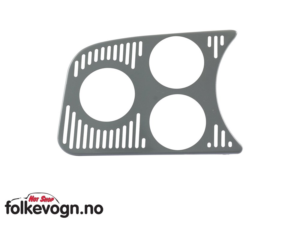 Panel som erstatter dashbord grill på venstre side. Dette har 3 hull for 52mm instrument. Passer VW Type-1 58-77, ikke 1303. leveres i grå grunning, lakkeres med fordel i bilens farge om ønskelig.