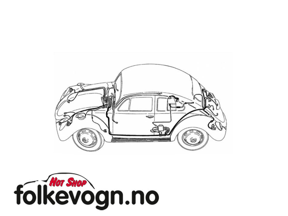 Ledningsnett til Type-1 Boble 1303 73-74, for biler med likestrømsdynamo. Dette er hovednettet fra sikringsboks bak til motor. Passer både sedan og cabriolet modeller.