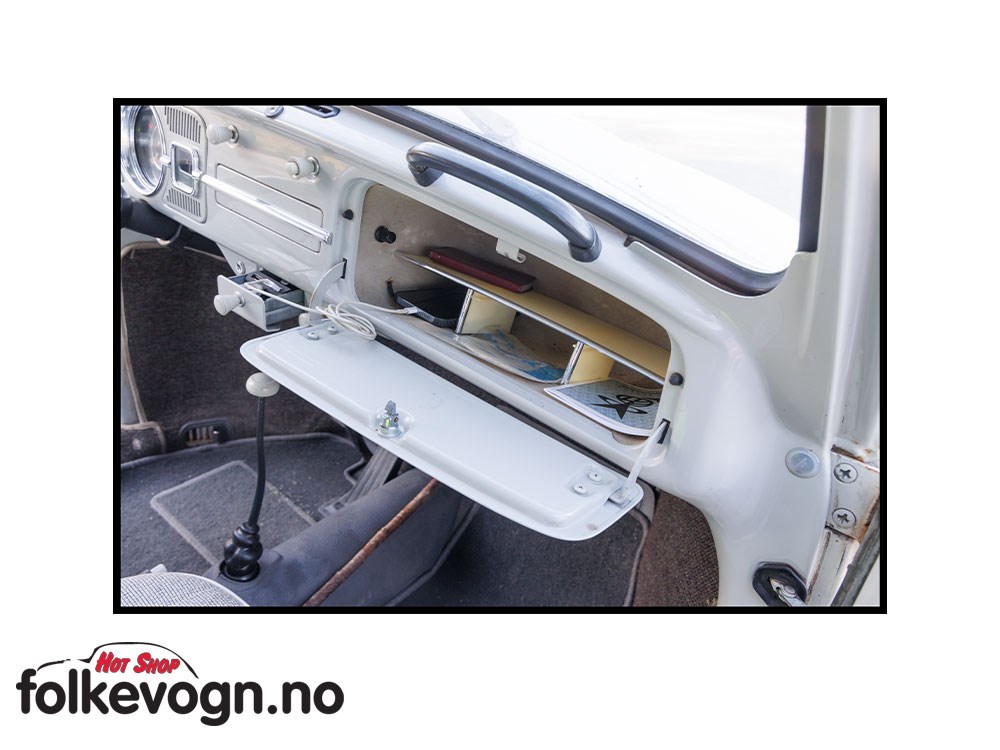 Stilig og praktisk hylle i plast som gjør det enkelt å ha det ryddig i hanskerommet i bobla. Passer T-1 58-79.